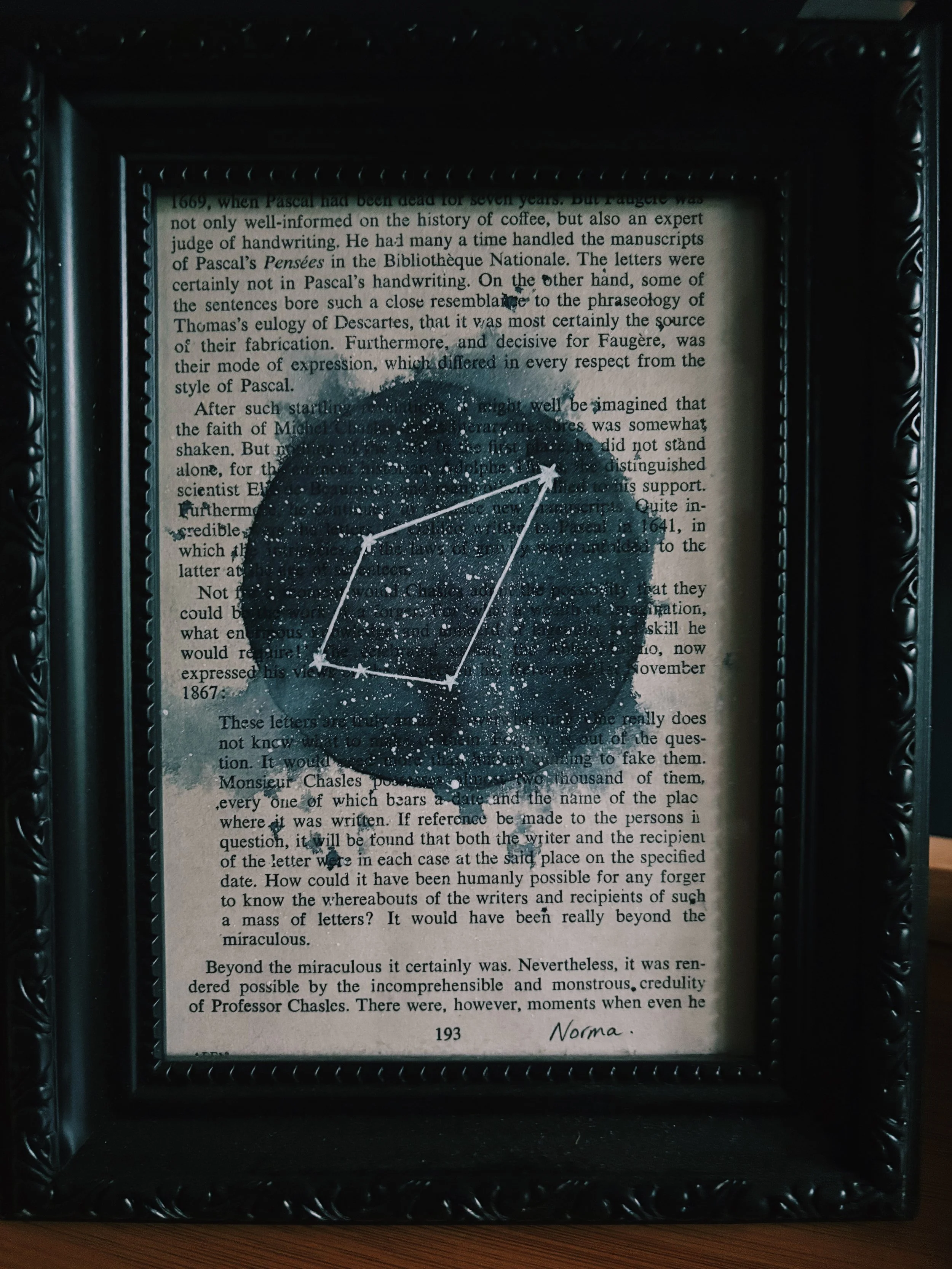 Shop Categories: All New! Pocket Constellations New! Myths & Legends Collection Greeting Cards Commissions Original Artwork Prints All | New! Pocket Constellations | New! Myths & Legends Collection | Greeting Cards | Commissions | Original Artwork | Prints | 5 for £15 – Winter Constellation A6 Keep & Frame Greeting Card Set £15.00 3 for £10 – Winter Constellation A6 Keep & Frame Greeting Card Set £10.00 Ursa Major | The Great Bear – A6 Keep & Frame Greeting Card (Winter Constellation Collection) £3.99 Columba | The Dove – A6 Keep & Frame Greeting Card (Winter Constellation Collection) £3.99 Monoceros | The Unicorn – A6 Keep & Frame Greeting Card (Winter Constellation Collection) £3.99 Orion | The Winter Hunter – A6 Keep & Frame Greeting Card (Winter Constellation Collection) £3.99 Canis Major | The Greater Dog – A6 Keep & Frame Greeting Card (Winter Constellation Collection) £3.99 Monoceros A5 Pocket Constellation + History Note | The Unicorn £7.00 Columba A5 Pocket Constellation + History Note | The Dove of Peace £7.00 Ursa Major A5 Pocket Constellation + History Note | The Great Bear £7.00 Monoceros Constellation A5 Watercolour Painting + History Note | The Unicorn £25.00 Columba Constellation Watercolour Painting | Myth of the Dove of Peace £25.00 Ursa Major Constellation A5 Watercolour Painting + History Note | The Great Bear £25.00 Cassiopeia A5 Pocket Constellation + History Note £7.00 Draco A5 Pocket Constellation + History Note £7.00 Pegasus A5 Pocket Constellation + History Note £7.00 Andromeda A5 Pocket Constellation + History Note £7.00 Orion A5 Pocket Constellation + History Note £7.00 Love You to the End of the Observable Universe and Back | Fold & Frame Fine Art Greeting Card £10.00 Pegasus Watercolour Constellation A5 Painting + History Note | Greek Myth of Medusa & Bellerophon £25.00 Orion Watercolour Constellation A5 Painting + History Note | Greek Myth of the Hunter £25.00 Lyra Watercolour Constellation A5 Painting + History Note | Greek Myth of Orpheus £25.00 Lupus Watercolour Constellation A5 Painting + History Note | Greek Myth of the Wolf £25.00 Lepus Watercolour Constellation A5 Painting + History Note | Greek Myth of the Hare £25.00 Hydra Watercolour Constellation A5 Painting + History Note | Greek Myth of the Sea Serpent £25.00 Hercules Watercolour Constellation A5 Painting + History Note | Greek Myth of the Hero £25.00 Eridanus Watercolour Constellation A5 Painting + History Note | Greek Myth of Phaethon £25.00 Equuleus Watercolour Constellation A5 Painting + History Note | Greek Myth of the Little Horse £25.00 Draco Watercolour Constellation A5 Painting + History Note | Greek Myth of the Dragon £25.00 Delphinus Watercolour Constellation A5 Painting + History Note | Greek Myth of the Dolphin £25.00 Cygnus Watercolour Constellation A5 Painting + History Note | Greek Myth of the Swan £25.00 Corvus & Crater Watercolour Constellation A5 Painting + History Note | Greek Myth of the Crow and the Cup £25.00 Corona Borealis Watercolour Constellation A5 Painting + History Note | Greek Myth of the Northern Crown £25.00 Corona Australis Watercolour Constellation A5 Painting + History Note | Greek Myth of the Southern Crown £25.00 Coma Berenices Watercolour Constellation A5 Painting + History Note | Greek Myth of Berenice’s Hair £25.00 Cetus Watercolour Constellation A5 Painting + History Note | Greek Myth of the Sea Monster £25.00 Cepheus Watercolour Constellation A5 Painting + History Note | Greek Myth of the King £25.00 Centaurus Watercolour Constellation A5 Painting + History Note | Greek Myth of the Centaur £25.00 Cassiopeia Watercolour Constellation A5 Painting + History Note | Greek Myth of the Queen £25.00 Aquila Watercolour Constellation A5 Painting + History Note | Greek Myth of the Eagle £25.00 Canis Minor Watercolour Constellation A5 Painting + History Note | Greek Myth of the Lesser Dog £25.00 Canis Major Watercolour Constellation A5 Painting + History Note | Greek Myth of the Great Dog £25.00 Boötes Watercolour Constellation A5 Painting + History Note | Greek Myth of the Herdsman £25.00 Auriga Watercolour Constellation A5 Painting + History Note | Greek Myth of the Charioteer £25.00 Argo Navis Watercolour Constellation A5 Painting + History Note | Greek Myth of the Argonauts £25.00 Ara Watercolour Constellation A5 Painting + History Note | Greek Myth of the Altar £25.00 Andromeda Watercolour Constellation A5 Painting + History Note | Greek Myth of the Princess £25.00 Framed 'Norma' Constellation on Book Page + History Note £35.00 Fold and Frame Star Sign Greeting Card Print £10.00 Star Sign Constellation Watercolour A4 Prints £15.00 A3 Cassiopeia Constellation Hand Painted Watercolour £35.00 Personalised Star Map from £40.00 Personalised Star Map Duo from £50.00 Couples & Family Constellation Artwork – Personalised Celestial Keepsake from £35.00 The Dark Moon A5 Print £10.00 A4 I Love You to the End of the Observable Universe Personalised Print £15.00 Moon Phase Watercolour Print from £10.00