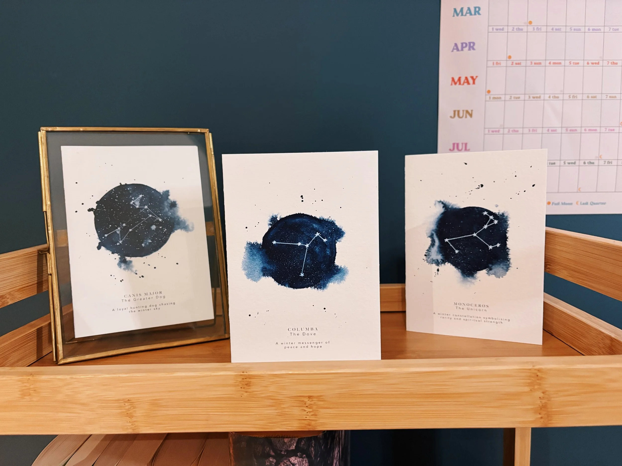 Greeting Cards Categories: All New! Pocket Constellations New! Myths & Legends Collection Greeting Cards Commissions Original Artwork Prints All / 5 for £15 – Winter Constellation A6 Keep & Frame Greeting Card Set £15.00 3 for £10 – Winter Constellation A6 Keep & Frame Greeting Card Set £10.00 Ursa Major | The Great Bear – A6 Keep & Frame Greeting Card (Winter Constellation Collection) £3.99 Columba | The Dove – A6 Keep & Frame Greeting Card (Winter Constellation Collection) £3.99 Monoceros | The Unicorn – A6 Keep & Frame Greeting Card (Winter Constellation Collection) £3.99 Orion | The Winter Hunter – A6 Keep & Frame Greeting Card (Winter Constellation Collection) £3.99 Canis Major | The Greater Dog – A6 Keep & Frame Greeting Card (Winter Constellation Collection) £3.99 Fold and Frame Star Sign Greeting Card Print £10.00 Love You to the End of the Observable Universe and Back | Fold & Frame Fine Art Greeting Card £10.00